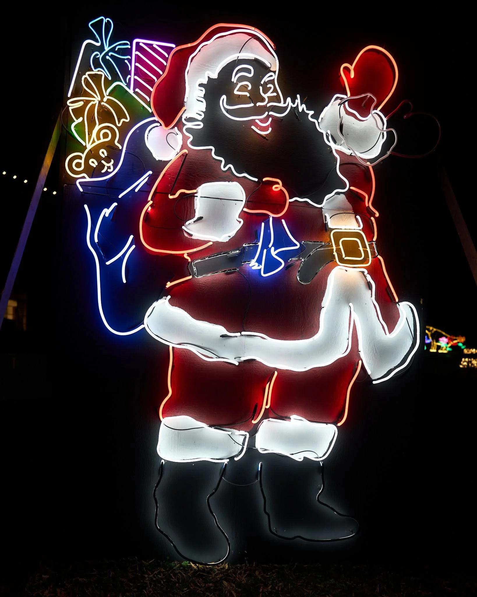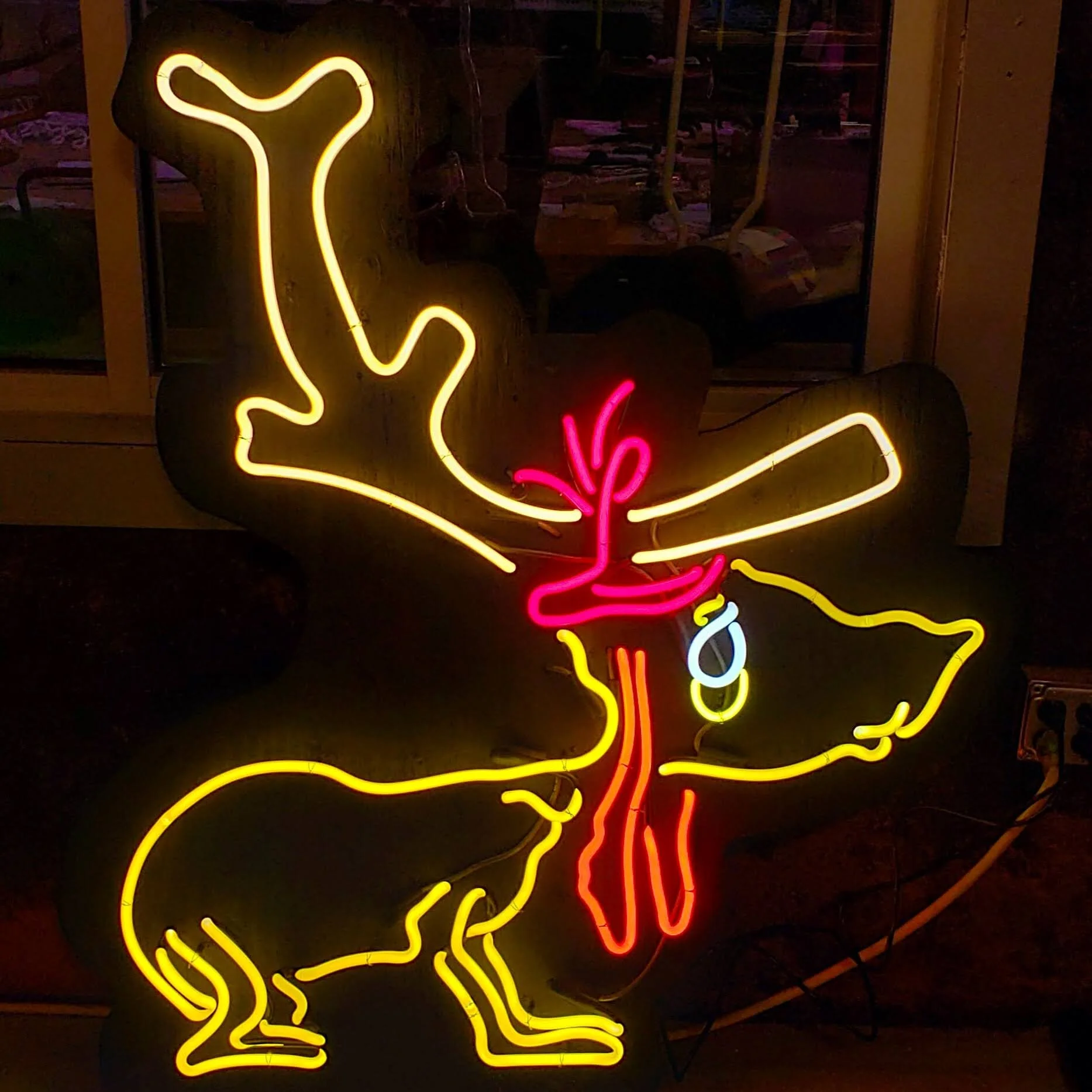 6’ 6” neon Buddy the Elf as seen in the film “Elf” starring Will Ferrell. This life-size neon depiction is ready to stand in your yard, on your porch or mount on a wall.