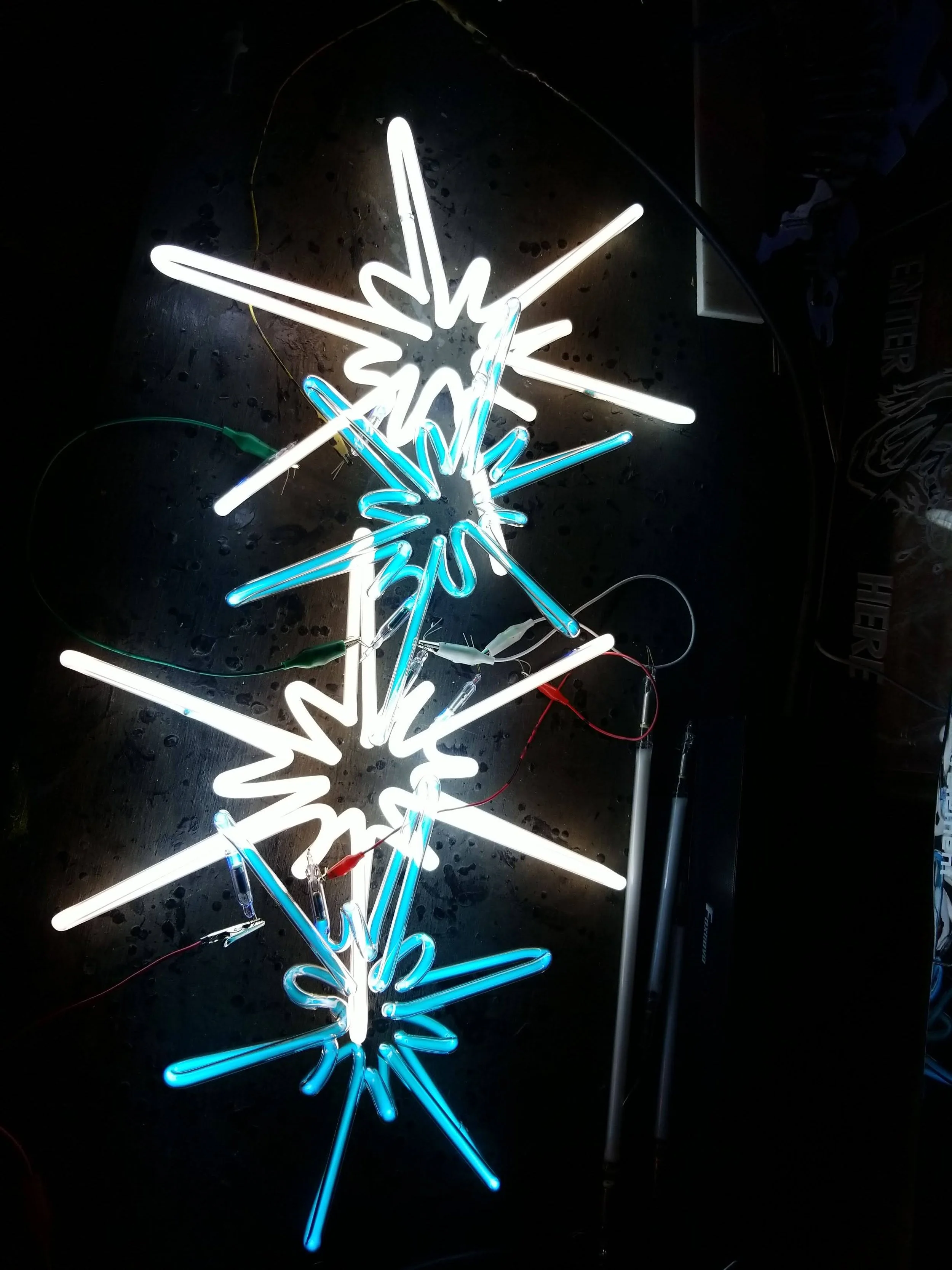 85 x animated snowflakes ranging in diameter from 12” to 32”, primarily in blue/ white animation combos, but with a limited number of red/white options.